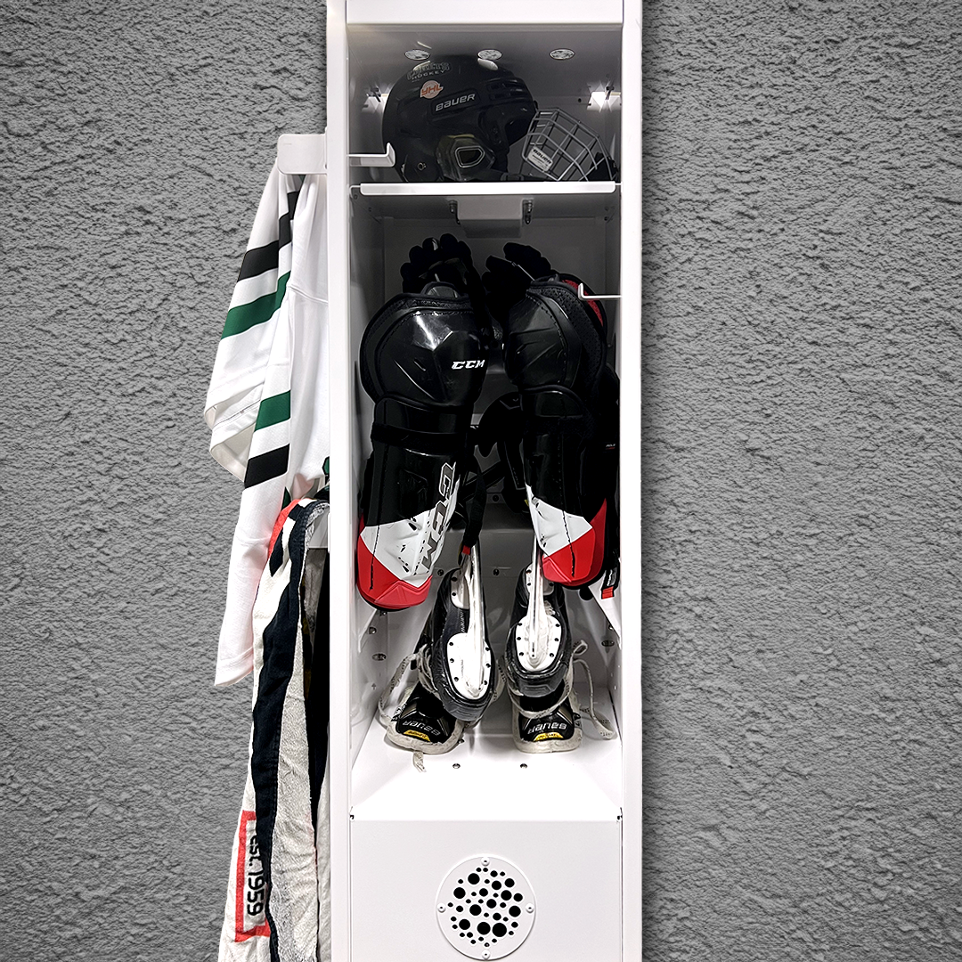 You can order your locker white (looks super clean), with a simple nameplate and team logo, or with a full custom wrap!